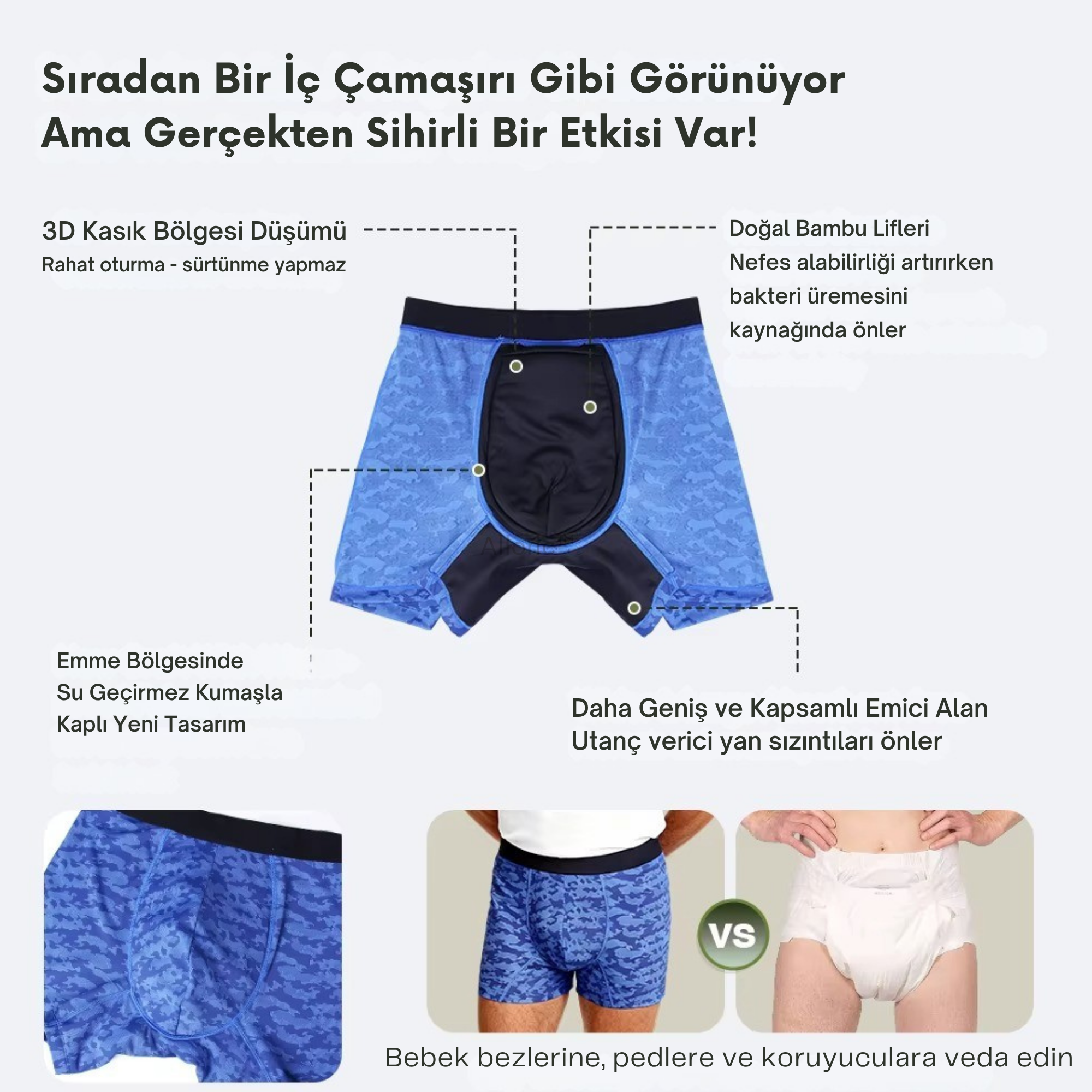 Çünkü bu sadece bir boxer değil, günlük hayatta yaşanan görünmeyen ama özgüveni etkileyen sorunlara karşı akıllı bir çözümdür. Erkeklerin en çok yaşadığı küçük sızıntı problemlerini fark edilmeden kontrol altına alır ve gün boyu rahatlık sağlar.Alloric™’in özel çok katmanlı emici teknolojisi, sıvıyı anında hapseder ve dışarıya sızmasını engeller. Böylece ister işte, ister dışarıda, ister uzun bir yolculukta olun; her an kendinizi güvende hissedersiniz. Koku oluşumunu azaltan yapısı sayesinde “acaba fark edilir mi?” endişesini ortadan kaldırır.Aynı zamanda vücuda tam oturan toparlayıcı formu sayesinde dışarıdan bakıldığında sıradan bir boxer gibi görünür. Kimse sizin ekstra koruma kullandığınızı anlamaz. Bu da kullanıcıların en çok sevdiği detaylardan biridir.Tek kullanımlık ürünlere sürekli para harcamak yerine, yıkanabilir ve uzun ömürlü yapısıyla ciddi bir tasarruf sağlar. Hem ekonomik hem de pratik bir çözümdür.Kısacası binlerce erkek Alloric™’i tercih ediyor çünkü: